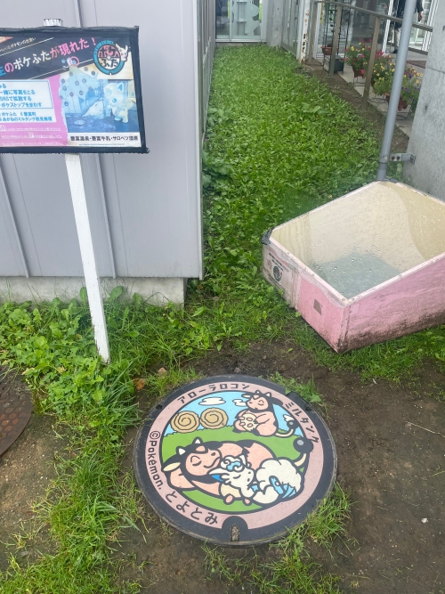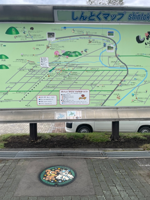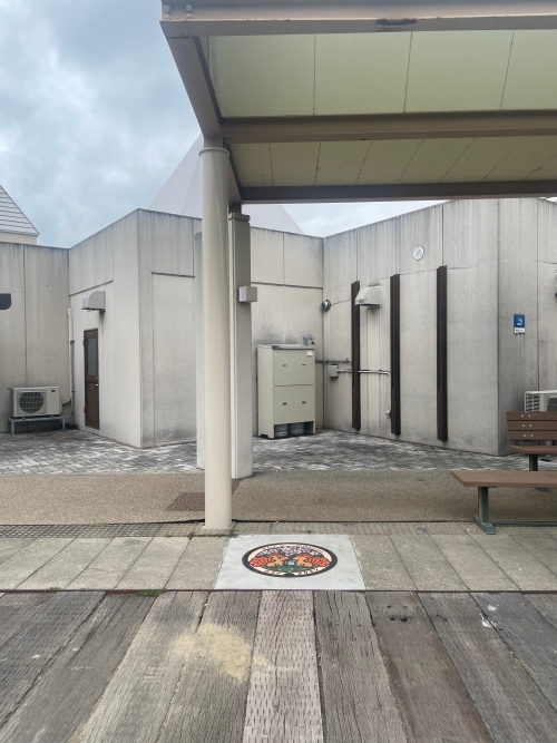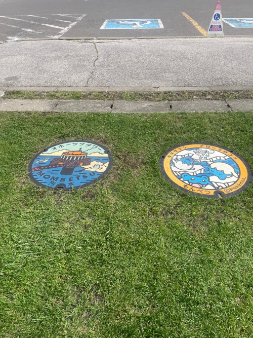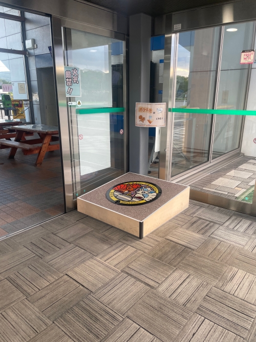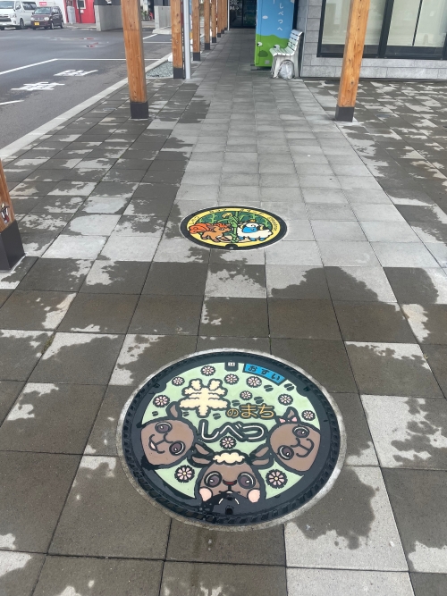 道の駅の駐車場に停めましたが、マンホールは駐車場からは駅を挟んで反対側にあります。