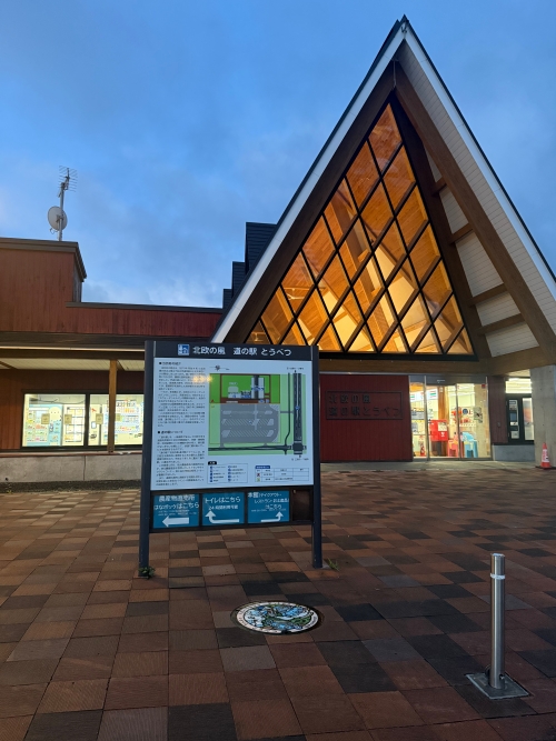 道の駅びえい「丘のくら」に隣接しているホテルの建物の横にありました。