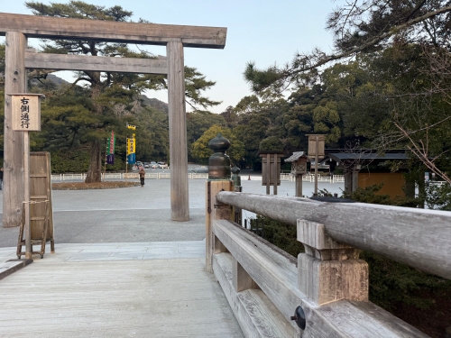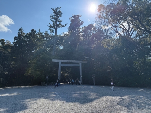 03/20(金・祝)(春分の日)は三連休の初日ということもあり混雑を覚悟していましたが、外宮の駐車場(無料・2025/03/20時点)は3割程度しか駐車しておらず、外宮の入口付近もそれほど人がいませんでした。